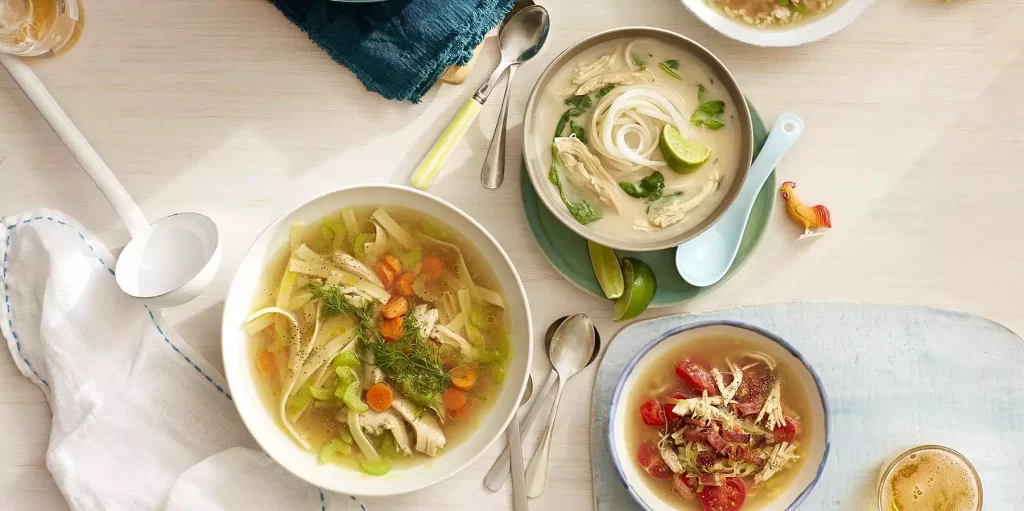 - سوپ مرغ منبع ایدهآلی از ویتامین ها، مواد معدنی، کالری و پروتئین است. در هنگام بیماری، بدن به این مواد احتیاج زیادی دارد. همچنین سوپ مرغ منبع خوبی برای تأمین الکترولیت و مایعات است.