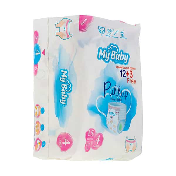 مشخصات پوشک شورتی مای بیبی سری پول آپ سایز 4 بسته 3 + 12