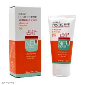 مشخصات کرم ضد آفتاب نئودرم برای پوست خشک و معمولی فاقد رنگ SPF50 حجم 50ml